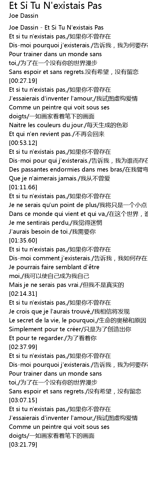 et si tu n existais pas lyrics by joe dassin et si tu n existais