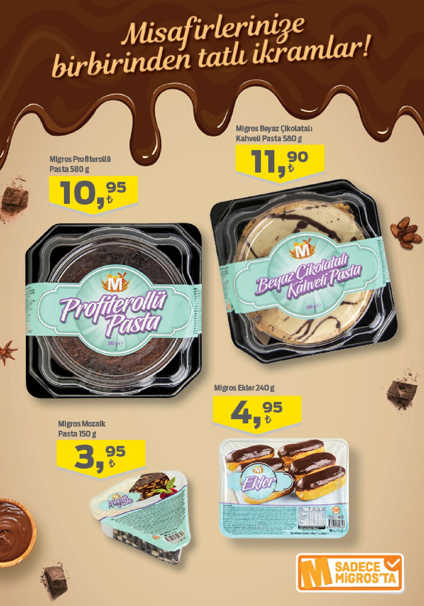 dondurulmus pasta tatli cesitleri ve fiyatlari migros